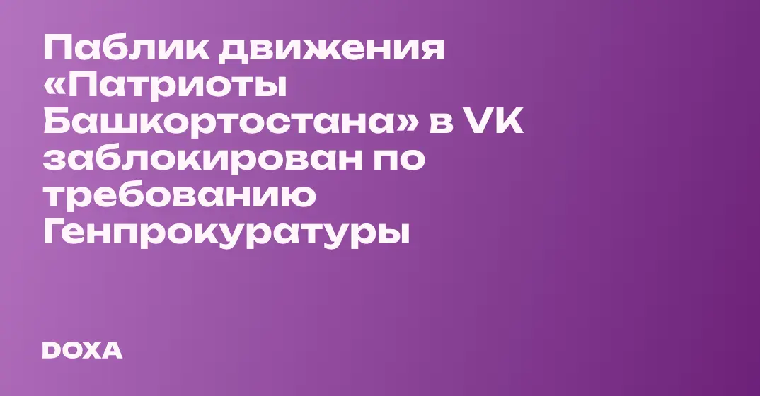 Паблик движения «Патриоты Башкортостана» в VK заблокирован по требованию Генпрокуратуры