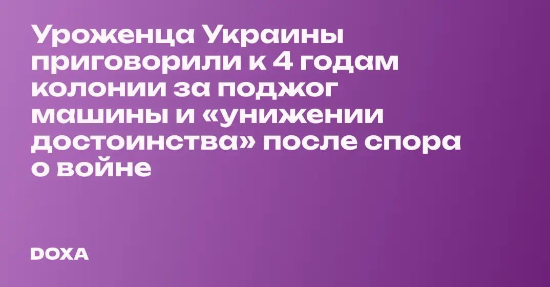 Уроженца Украины приговорили к 4 годам колонии за поджог машины и «унижении достоинства» после спора о войне