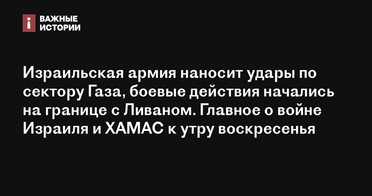 Израильская армия наносит удары по сектору Газа, боевые действия начались на границе с Ливаном. Главное о войне Израиля и ХАМАС к утру воскресенья