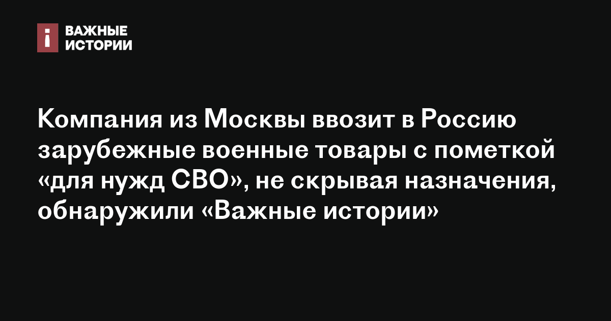 Компания из Москвы ввозит в Россию зарубежные военные товары с пометкой «для нужд СВО», не скрывая назначения, обнаружили «Важные истории»