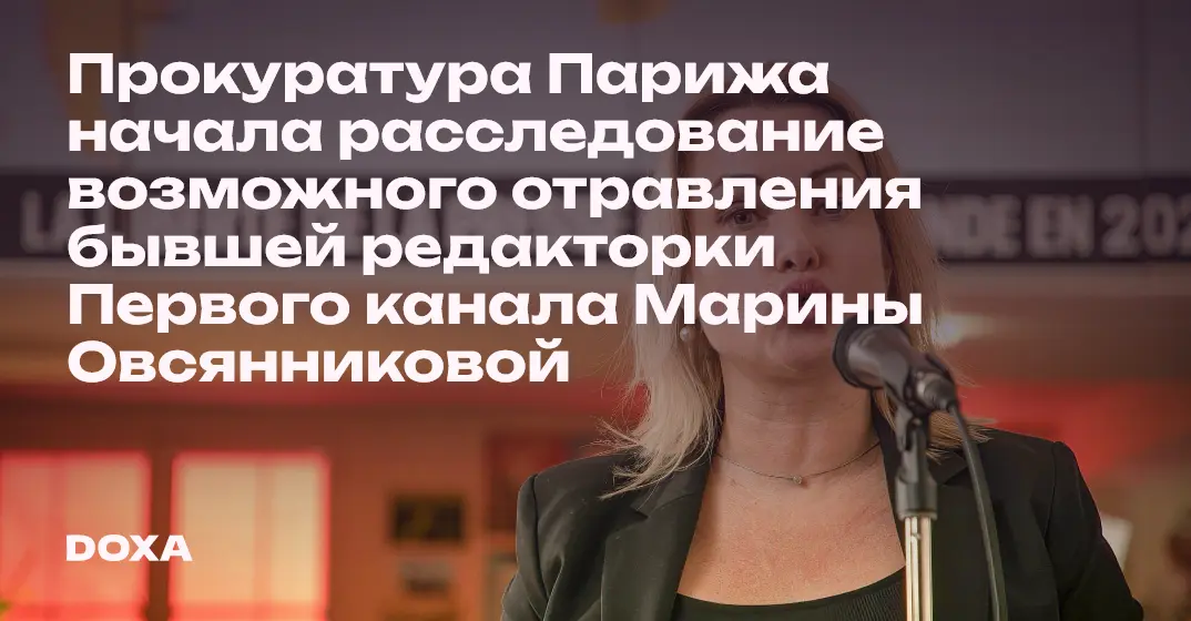 В Париже прокуратура начала расследование в связи с возможным отравлением бывшей редакторки Первого канала Марины Овсянниковой. Самочувствие Овсянниковой ухудшилось после того, как она вышла из своего дома.