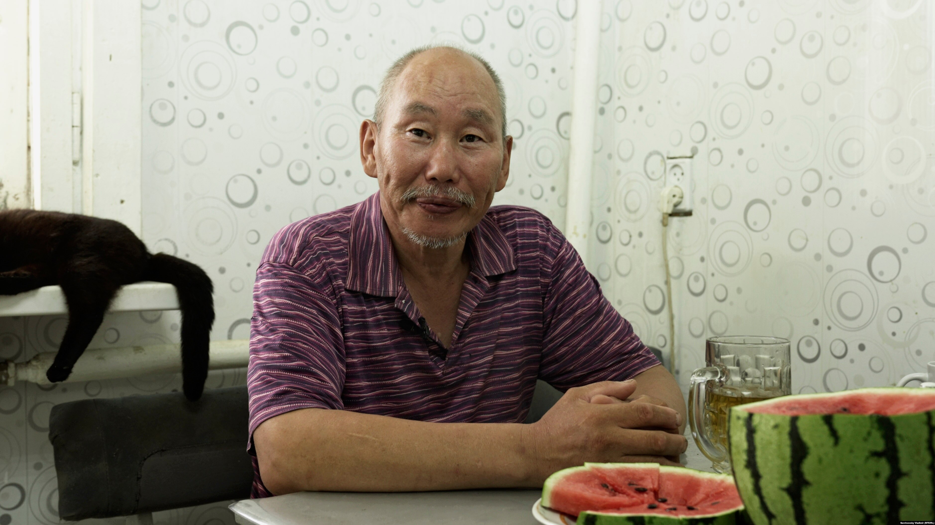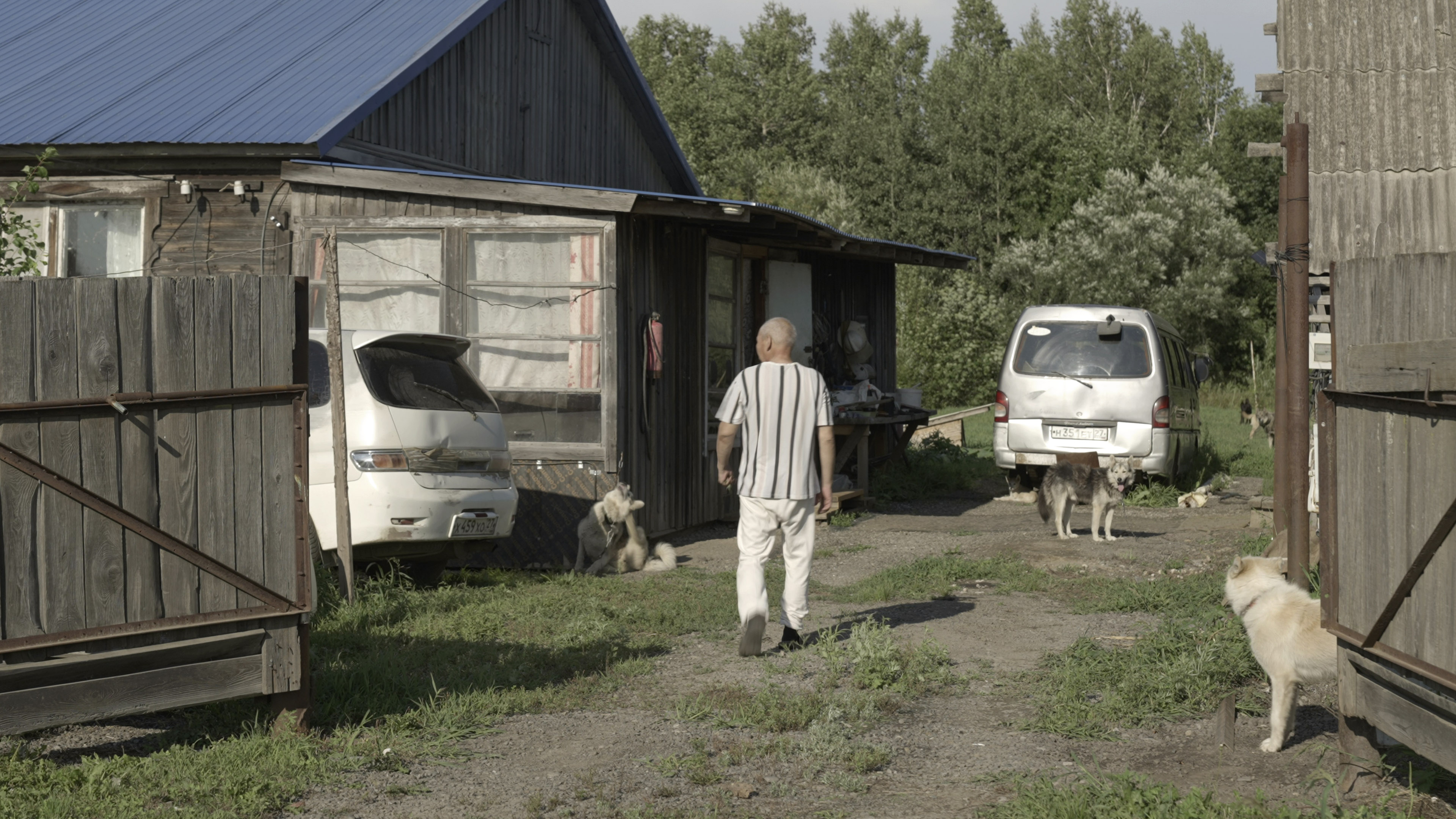 Под визг собак во двор входит крепкий брюнет лет тридцати. На жаре он стягивает футболку, и они общаются с Андреем как старые друзья, переходя с нанайского на русский и обратно.