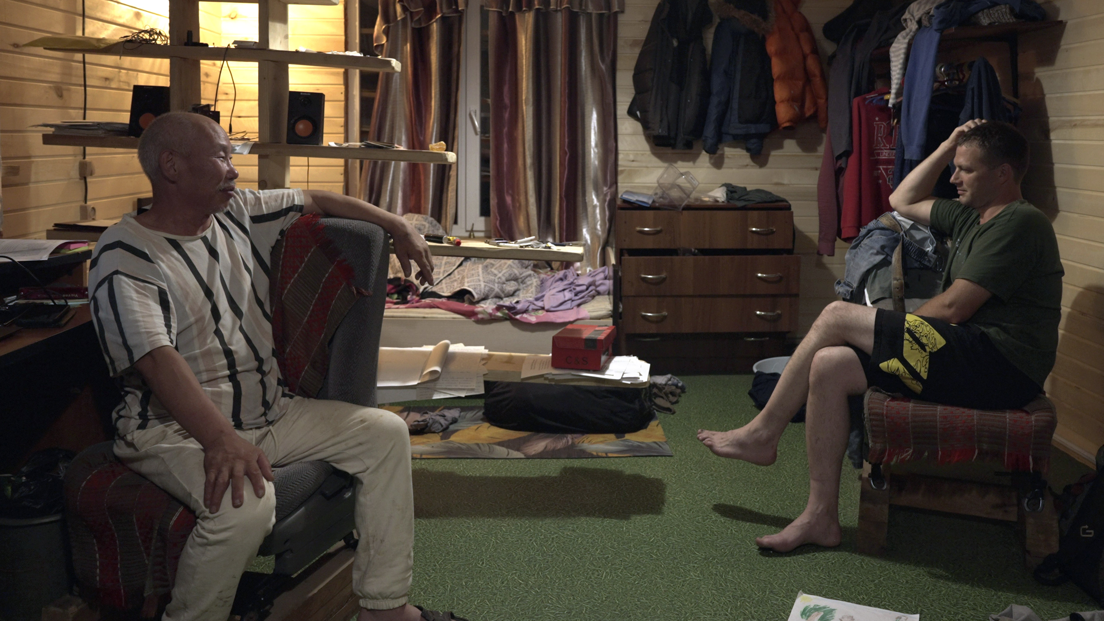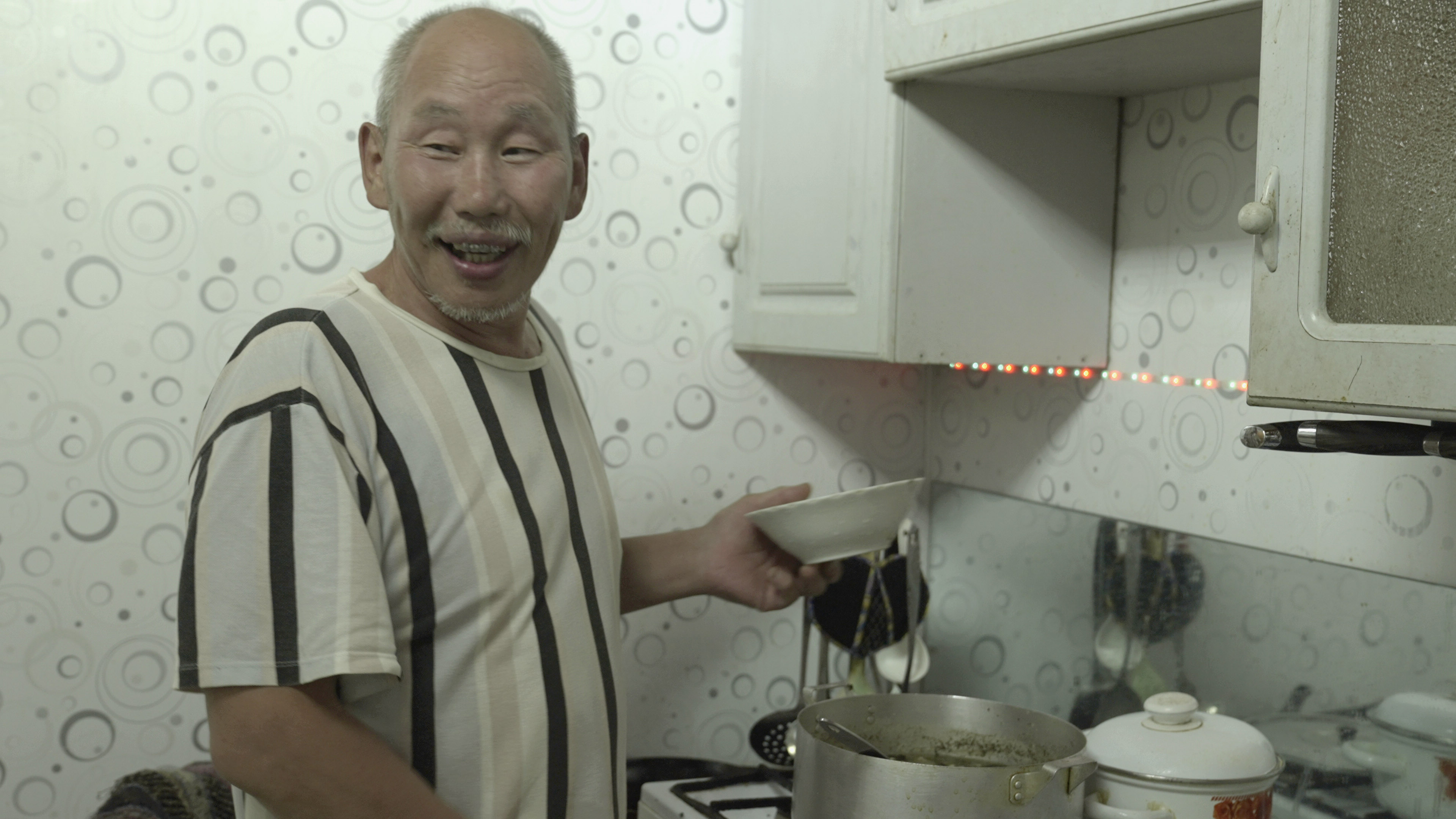 Жена Андрея приносит полные миски ароматного, горьковатого супа. Русский и нанаец синхронно берут ложки. За столом они окончательно переходят на нанайский язык, который оба выучили взрослыми и оба пытаются сохранить. Лишь однажды за взрывом хохота Андрей добавляет на русском: