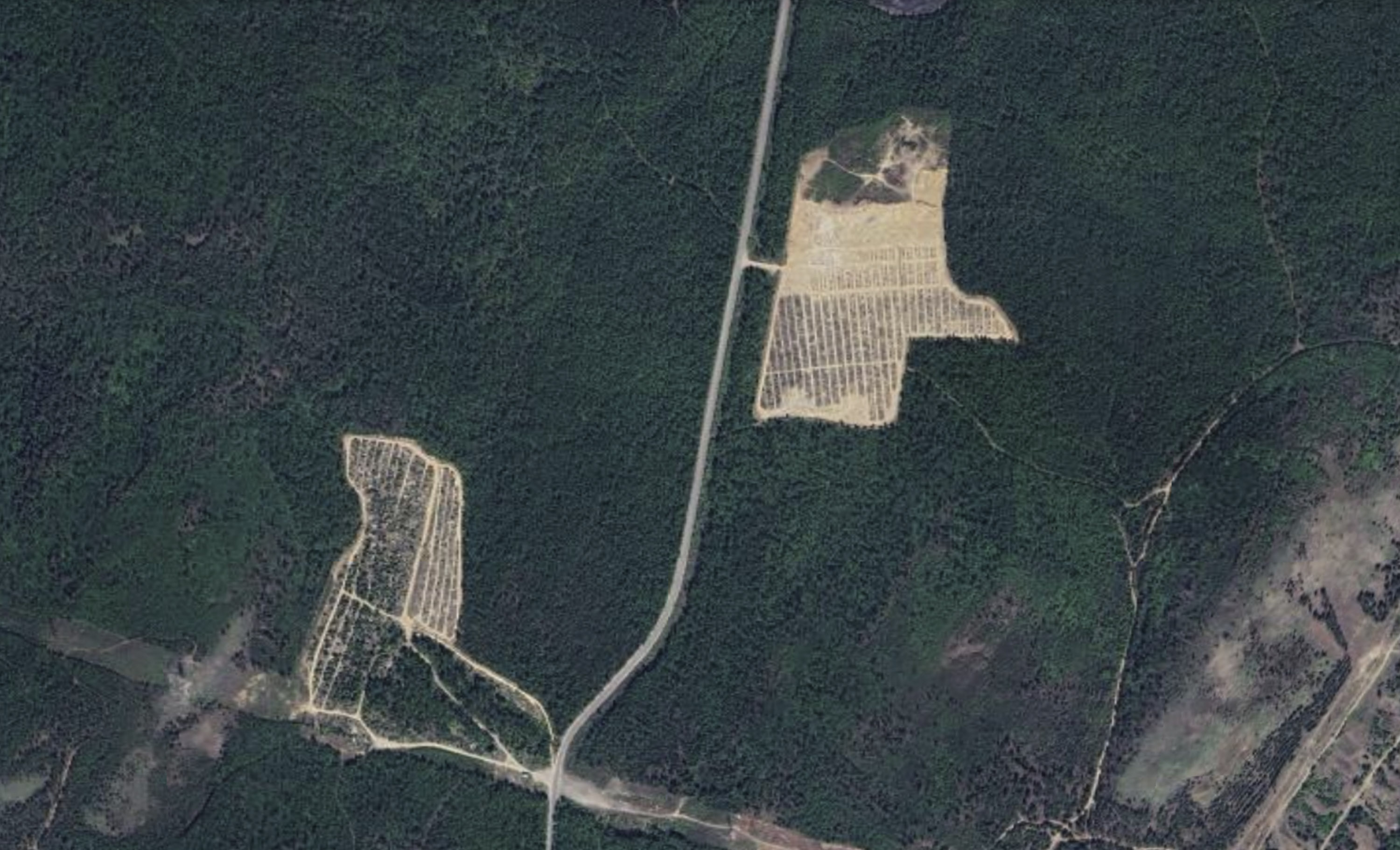 Вырубки под кладбище в районе Байкало-Амурской магистрали. Скриншот: Google maps