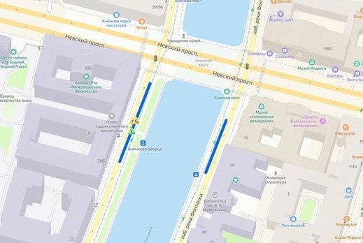 - с 21 октября по 30 ноября — по набережной реки Фонтанки у Аничкова моста.