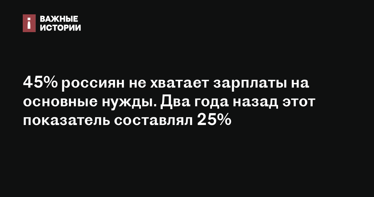 45% россиян не хватает зарплаты на основные нужды. Два года назад этот показатель составлял 25%