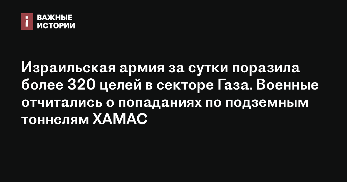 Израильская армия за сутки поразила более 320 целей в секторе Газа. Военные отчитались о попаданиях по подземным тоннелям ХАМАС