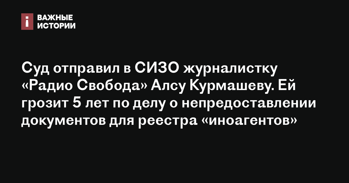 Суд отправил в СИЗО журналистку «Радио Свобода» Алсу Курмашеву. Ей грозит 5 лет по делу о непредоставлении документов для реестра «иноагентов»