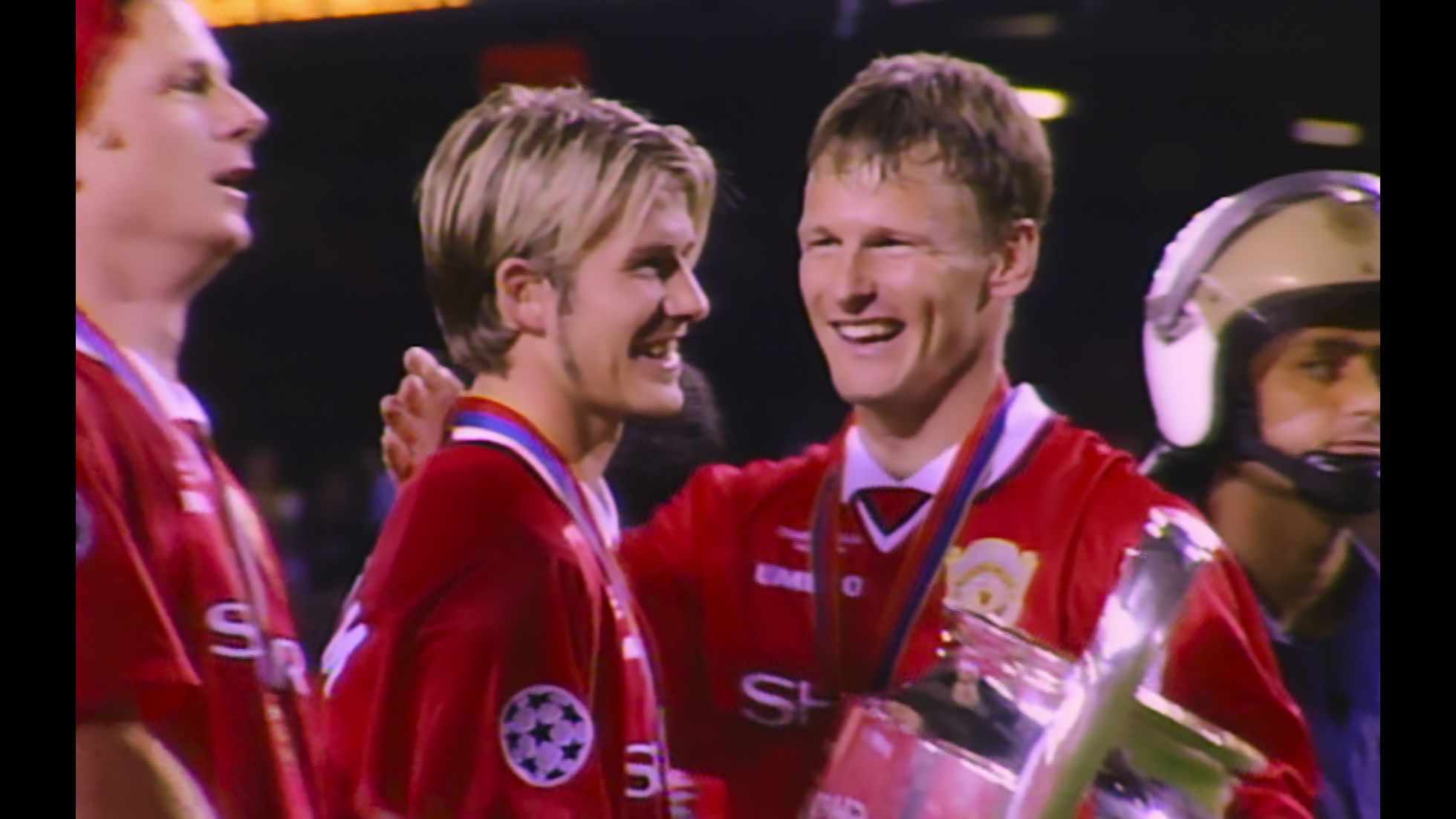 Еще одна находка Стивенса: великолепные крупные планы героев интервью, ломающие «четвертую стену». Они смотрят прямо в глаза зрителю и при этом видят кадры футбольной хроники — этот прием позволяет считать все эмоции на лицах футболистов. Дэвид с ностальгической улыбкой смотрит на свой первый гол за «Манчестер Юнайтед», а аргентинец Диего Симеоне, который спровоцировал удаление Бекхэма на чемпионате мира в 1998-м, не без удовольствия пересматривает этот эпизод. В следующем интервью Симеоне без стеснения признается Стивенсу, что симулировал то падение.