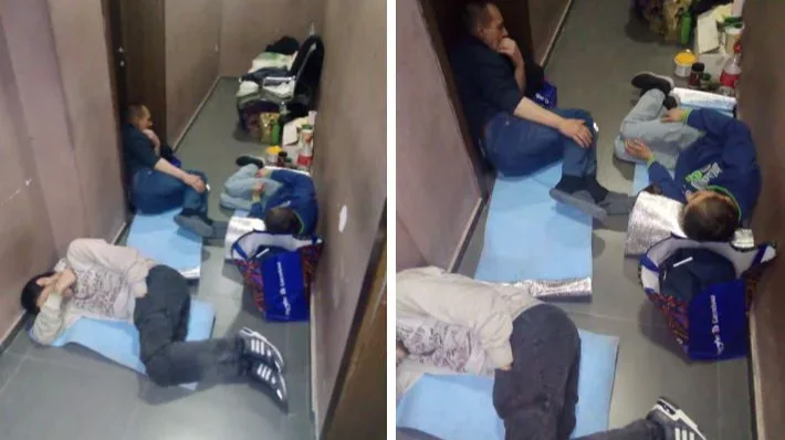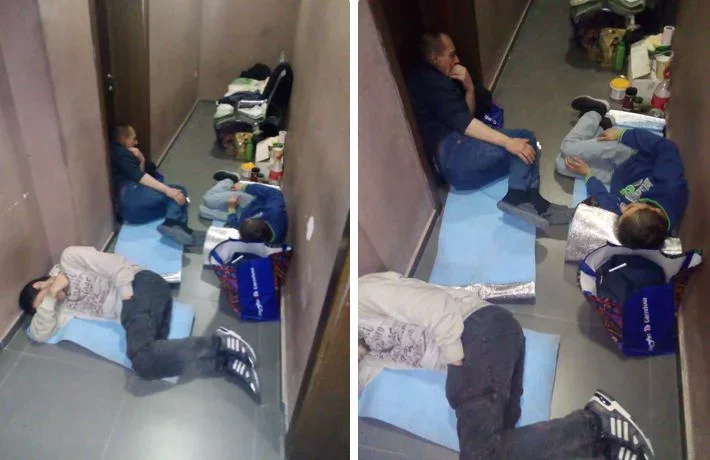 The men have been sleeping on the floor at the Georgian border checkpoint for two weeks so far; the volunteers bring them food and water. One of the men slit his wrists in an act of protest and received medical treatment.