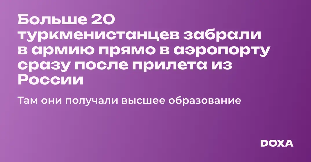В Балканском велаятеСамый западный регион Туркменистана около 25 молодых людей, вернувшихся после учебы в России, прямо из аэропорта забрали в армию. Власти страны ужесточают меры по призыву граждан страны в вооруженные силы.