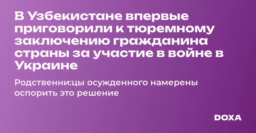 В Узбекистане впервые вынесен приговор гражданину страны за участие в боевых действиях на территории Украины. По версии следствия в 2014–2015 годах он воевал на стороне ДНР. Родственни:цы осужденного не согласны.