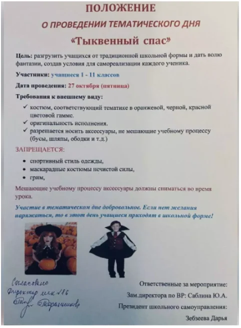 «Несмотря на ажиотаж вокруг нашей школы и множество негодований, наш праздник состоялся. Всё было ярко, насыщенно, интересно, зажигательно и просто классно. Мы уверены, что «Тыквенный фестиваль» станет замечательной доброй традицией 16-й школы», — отметили на странице школы во «ВКонтакте».