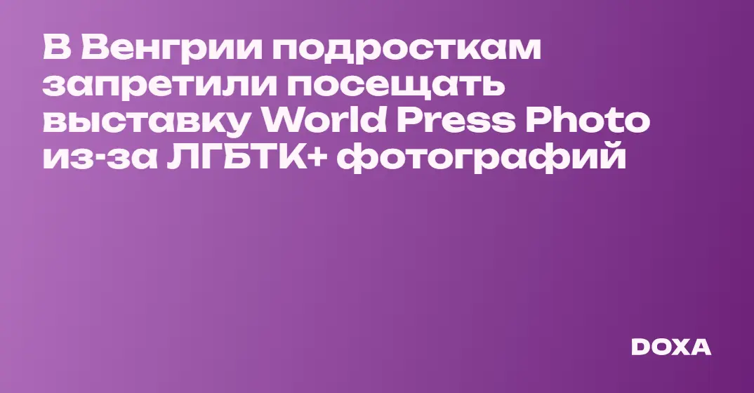 В Будапеште ввели возрастное ограничение на посещение выставки World Press Photo — люди до 18 лет не смогут попасть туда из-за «ЛГБТ-пропаганды». Посетить выставку нельзя даже с согласия родителей. По словам исполнительной директорки World Press Photo Джоуманы Эль-Зейн Хури, это первый случай цензуры выставки в Европе.