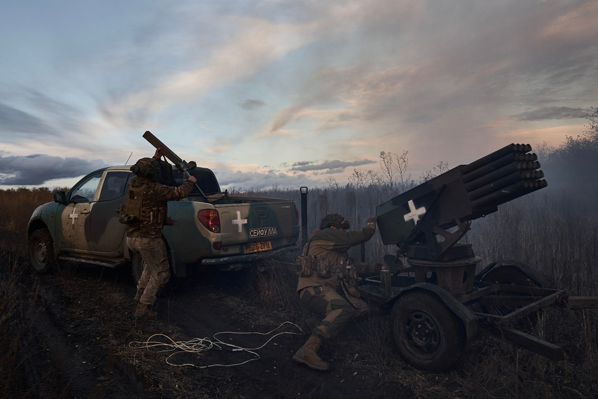 Украинские артиллеристы с самодельной РСЗО под Бахмутом