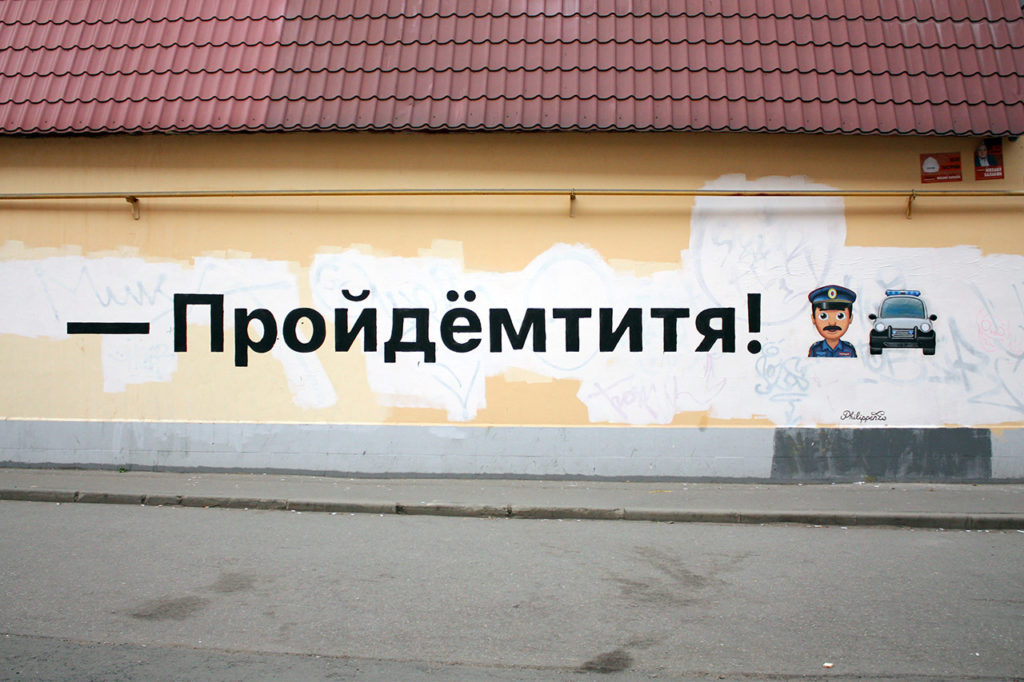 Это та идея, которую я стараюсь доносить своим творчеством. Работа «[ПОЦЕЛУИ]» тоже была про это. Если вы чувствуете себя некомфортно, глядя на форму силовых структур, то можно с помощью небольшого творческого движения «полицию» превратить в «поцелуи», и ты становишься сильнее. Главное оружие системы — это страх. А, как мы знаем из жанра хоррор, зло питается страхом. И надо лишить его этой подпитки, тогда оно ослабнет, и мы его победим.