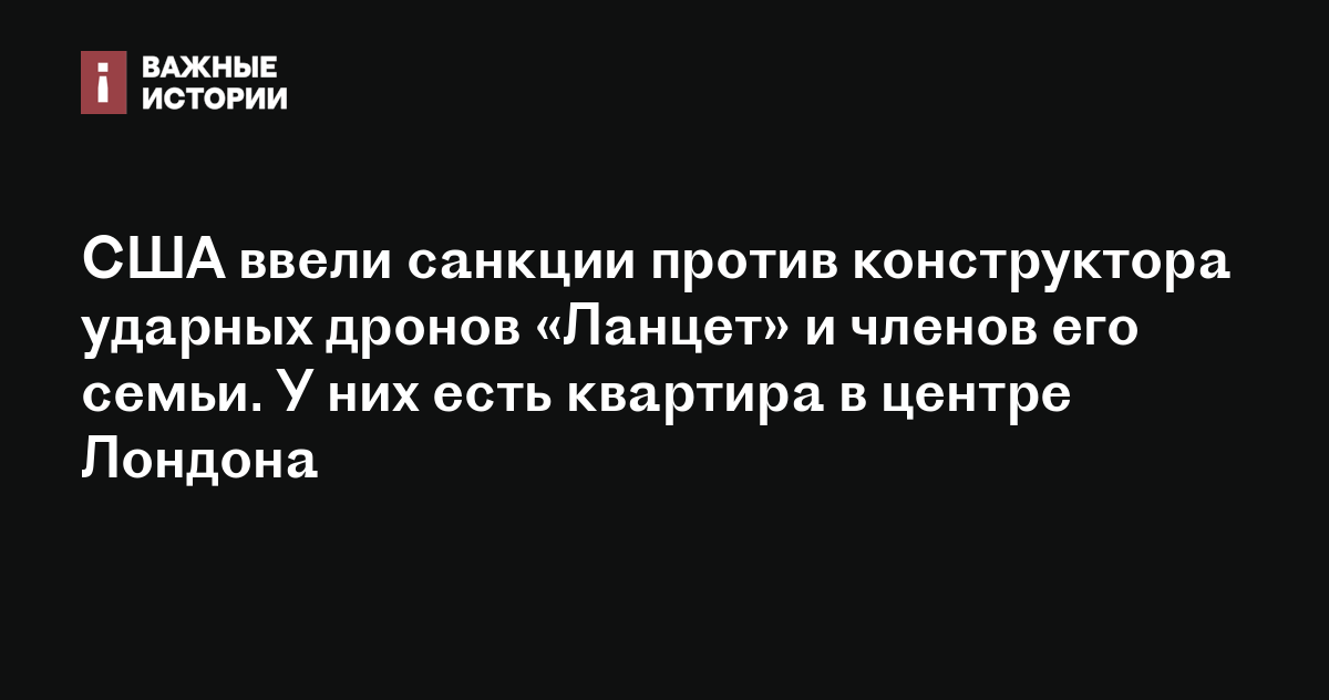 США ввели санкции против конструктора ударных дронов «Ланцет» и членов его семьи. У них есть квартира в центре Лондона
