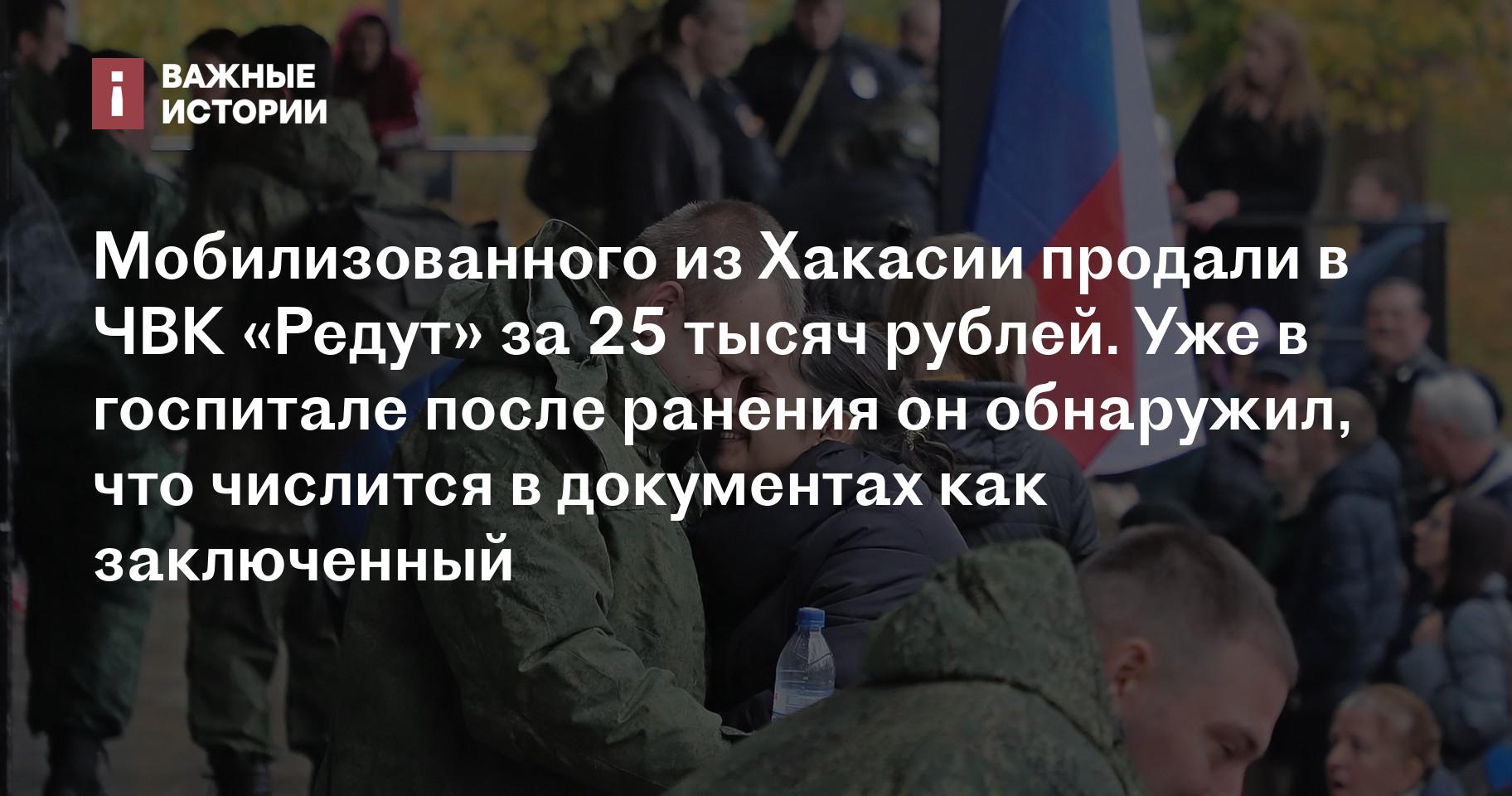Мобилизованного из Хакасии продали в ЧВК «Редут» за 25 тысяч рублей. Уже в госпитале после ранения он обнаружил, что числится в документах как заключенный