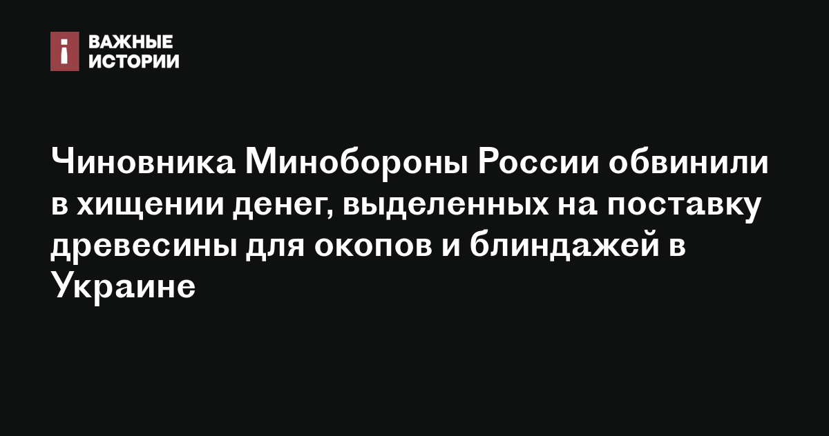 Чиновника Минобороны России обвинили в хищении денег, выделенных на поставку древесины для окопов и блиндажей в Украине