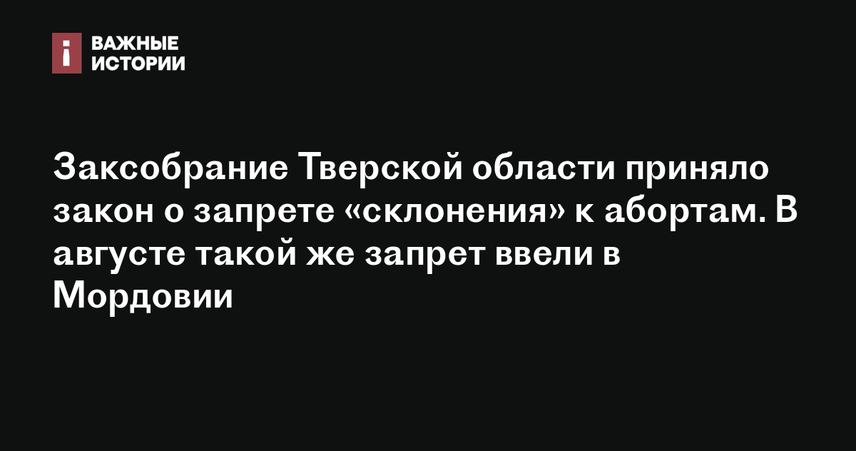 Заксобрание Тверской области приняло закон о запрете «склонения» к абортам. В августе такой же запрет ввели в Мордовии
