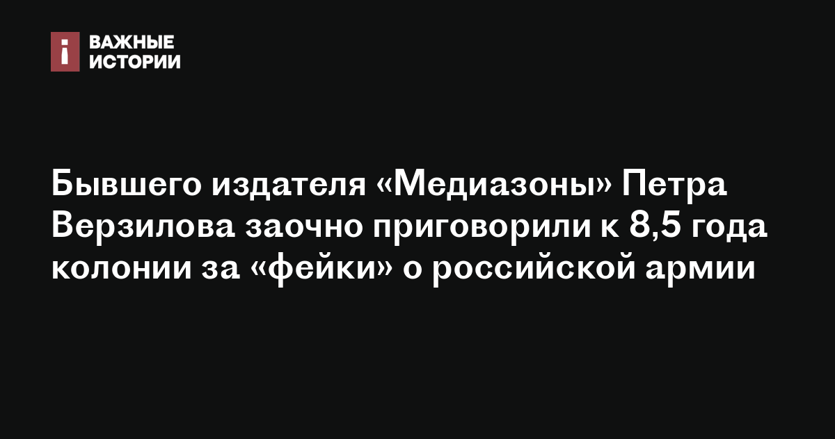 Бывший издатель «Медиазоны» Петр Верзилов получил восемь с половиной лет колонии за распространение «фейков» о российской армии, сообщает «Медиазона». Поводом для возбуждения уголовного дела стали посты в «Твиттере» и «Инстаграме» с рассказами о преступлениях российской армии в Буче. Обвинение просило девять лет лишения свободы.
