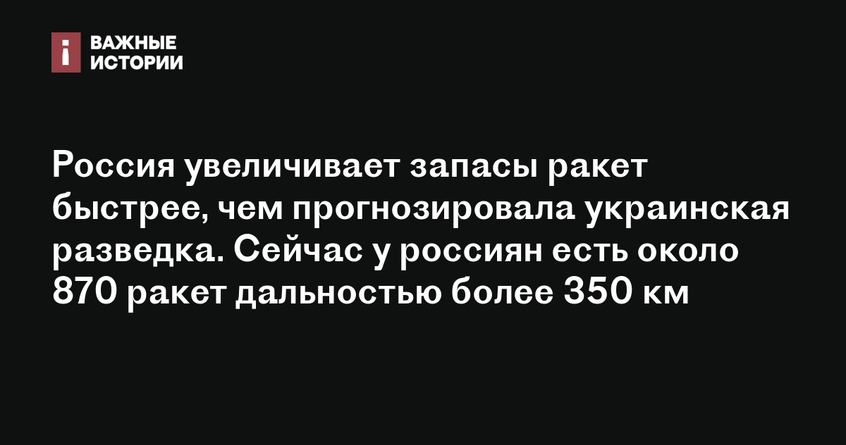 Россия увеличивает запасы ракет быстрее, чем прогнозировала украинская разведка. Сейчас у россиян есть около 870 ракет дальностью более 350 км