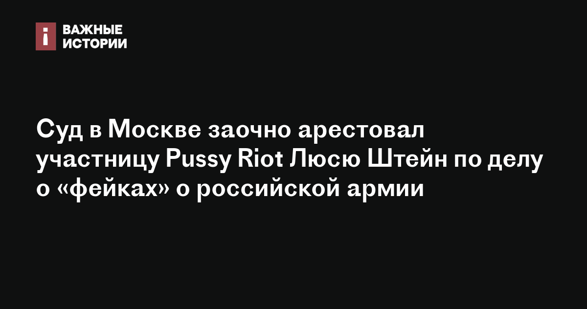 Басманный районный суд Москвы заочно арестовал участницу группы Pussy Riot Люсю Штейн, говорится в карточке дела, на которую обратила внимание «Медиазона». Штейн обвиняют в распространении «фейков» о российской армии по мотивам политической ненависти. Также активистку объявили в международный розыск, сообщили ТАСС в суде.