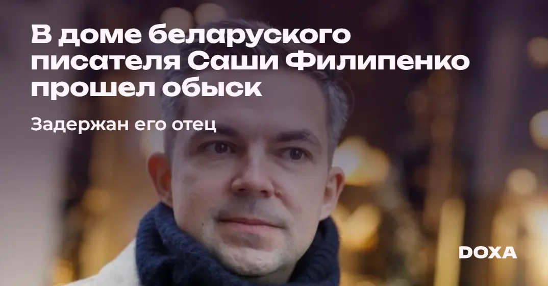 В доме беларуского писателя Саши Филипенко прошел обыск в результате которого задержан его отец. В ходе обыска в дом зашло семь силовиков с автоматами. Сам писатель связывает это с его высказываниями против репрессий в Беларуси и войны в Украине.