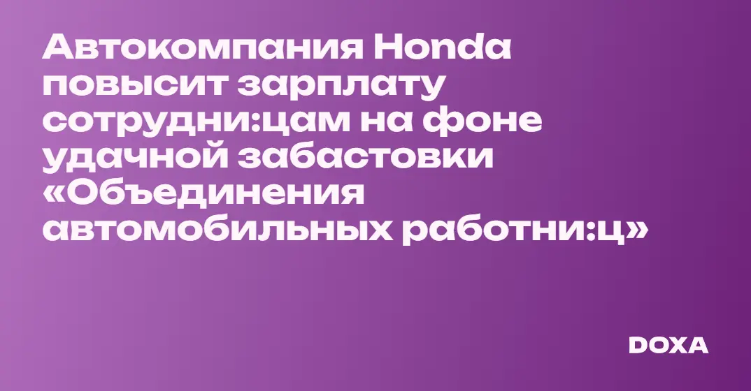Автокомпания Honda повысит зарплату сотрудни:цам на фоне удачной забастовки «Объединения автомобильных работни:ц»