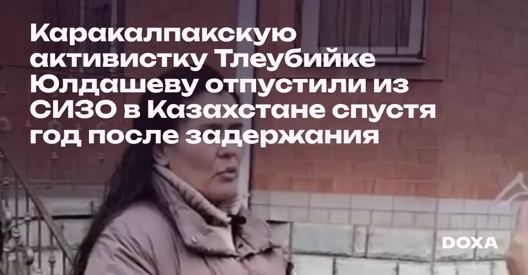 В городе Актобе на свободу из СИЗО вышла каракалпакская активистка Тлеубийке Юлдашева, которая была лишена свободы в течение года. На сообщение члена каракалпакской диаспоры в Казахстане Акылбека Муратбая обратила внимание «Медиазона. Центральная Азия».