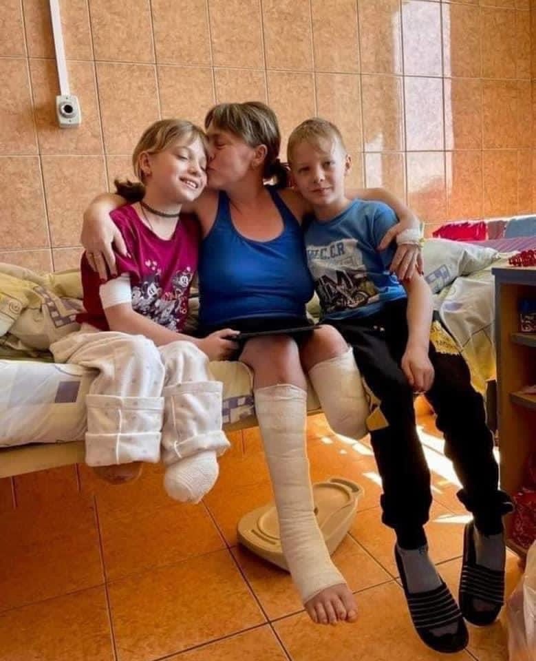 Наталья Степаненко, ее 11-летние близнецы, Яна и Ярослав, и их бабушка попали под ракетный обстрел на железнодорожном вокзале Краматорска в апреле. Наталья потеряла одну ногу, а Яна – обе.