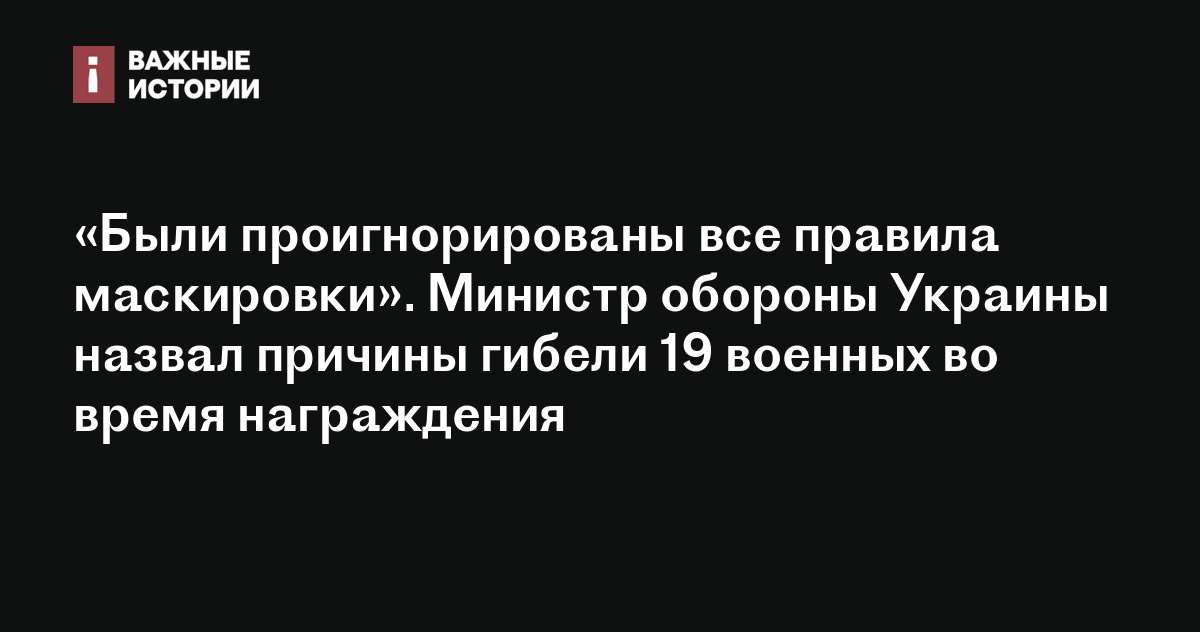 «Были проигнорированы все правила маскировки». Министр обороны Украины назвал причины гибели 19 военных во время награждения