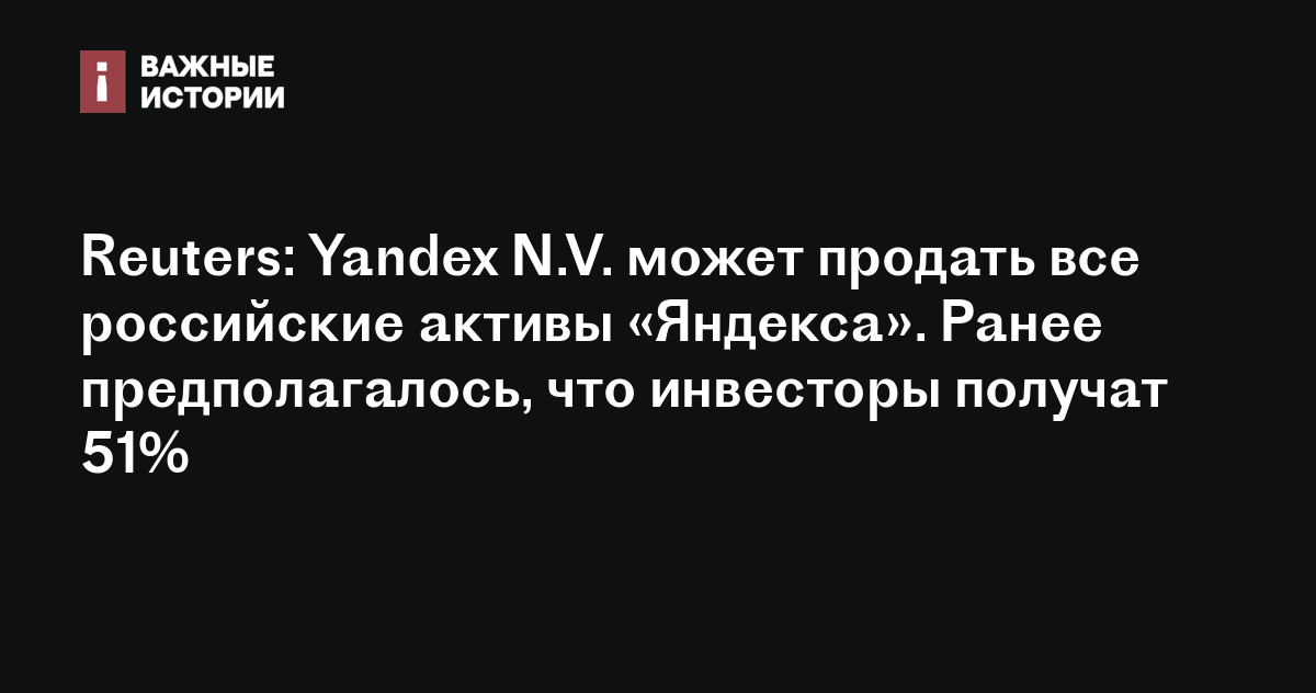 Reuters: Yandex N.V. может продать все российские активы «Яндекса». Ранее предполагалось, что инвесторы получат 51%
