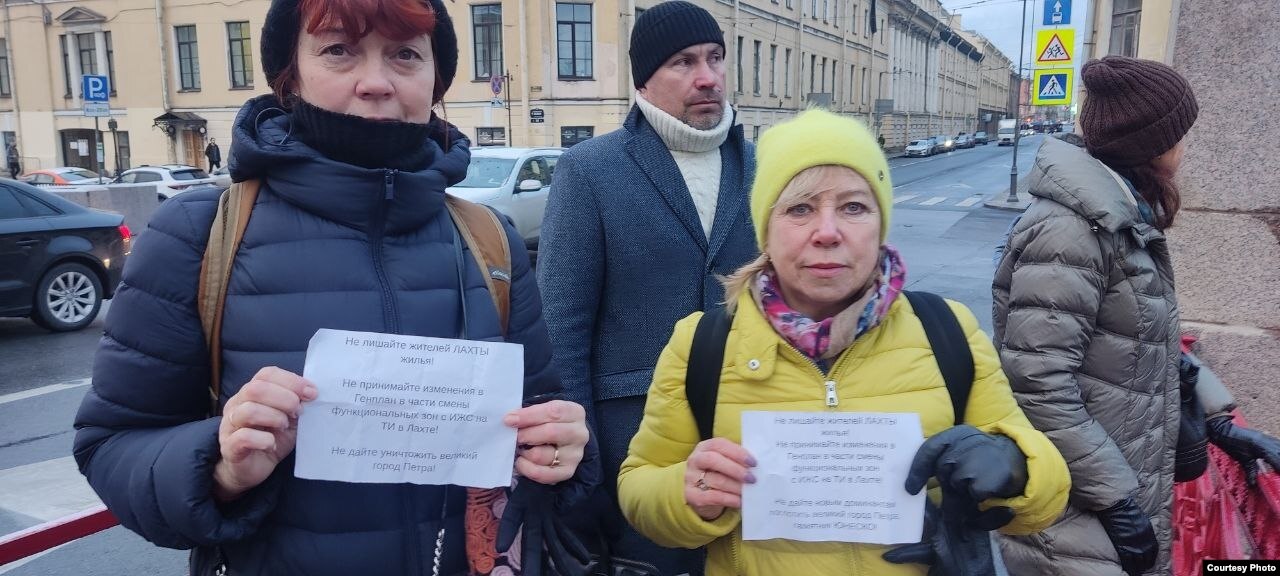 "Нас изначально обманули. Когда строили первый "Лахта-центр", нас уверяли, что больше башен строить не будут. На месте, где сейчас запланировано строительство двух башен, должны были быть рекреационная зона, теннисный корт и прочие социальные объекты. Вместо этого, втихую, власти города лоббируют строительство двух башен и транспортную развязку - подъезд к этим башням. Подъезд будет строиться ровно на месте наших жилых домов. Для этого исполнительная власть города, используя свой административный ресурс хочет перевести земли, на которых стоят дома из зоны жилого строительства (ИЖС) в зону транспортной инфраструктуры. Таким образом они готовят силовое изъятие наших земельных участков, - рассказала Север.Реалии одна из участниц акции Марина.