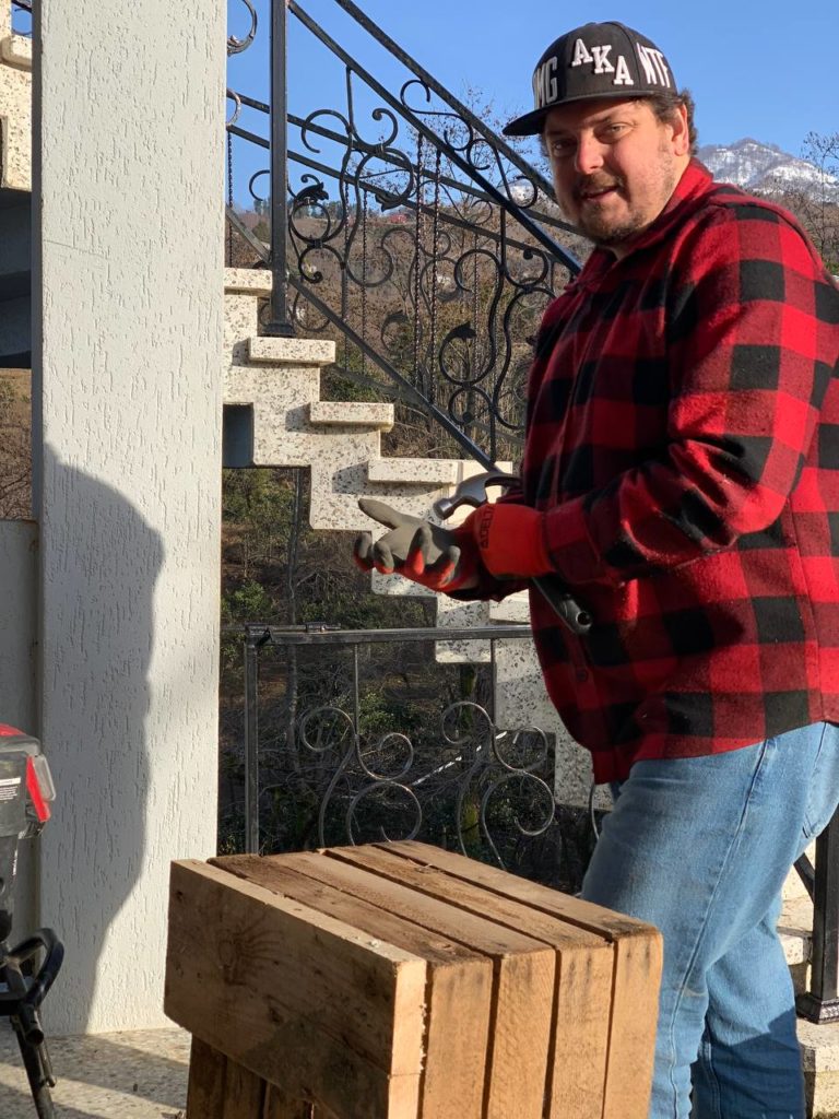 За время пандемии Лена обнаружила у себя талант к тому, чтобы заниматься огородом. Я тоже с детства привык жить на природе. К тому же в то время уже чувствовалось напряжение в стране. Мы решили, что уедем в горы, построим там дом: если все совсем плохо стало бы, то питались бы со своего огорода.