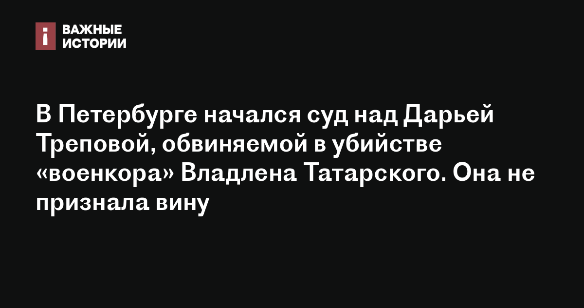 В Петербурге начался суд над Дарьей Треповой, обвиняемой в убийстве «военкора» Владлена Татарского. Она не признала вину