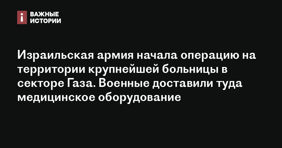 Израильская армия начала операцию на территории крупнейшей больницы в секторе Газа. Военные доставили туда медицинское оборудование