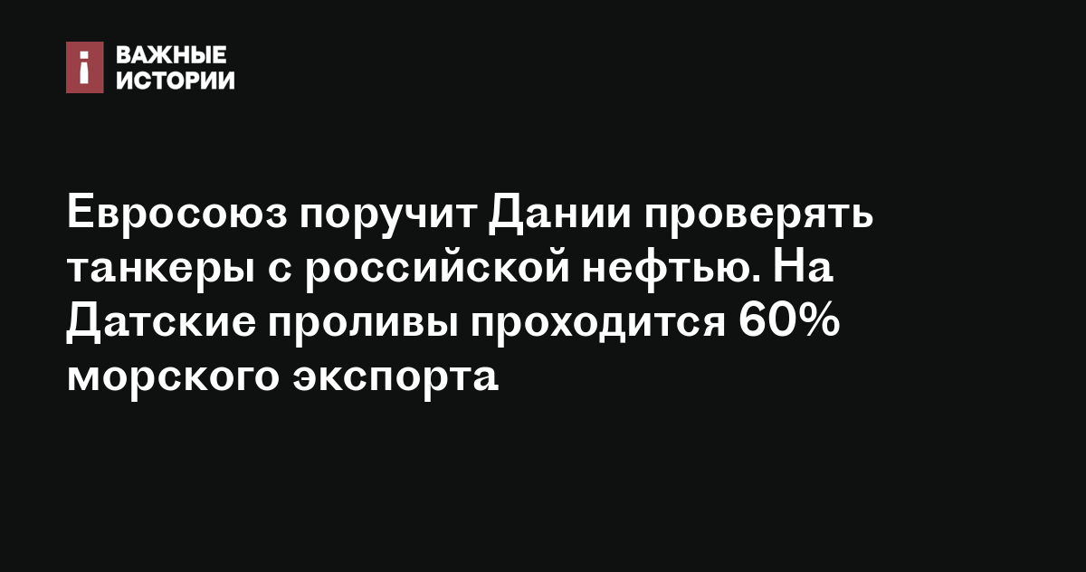 Евросоюз поручит Дании проверять танкеры с российской нефтью. На Датские проливы проходится 60% морского экспорта