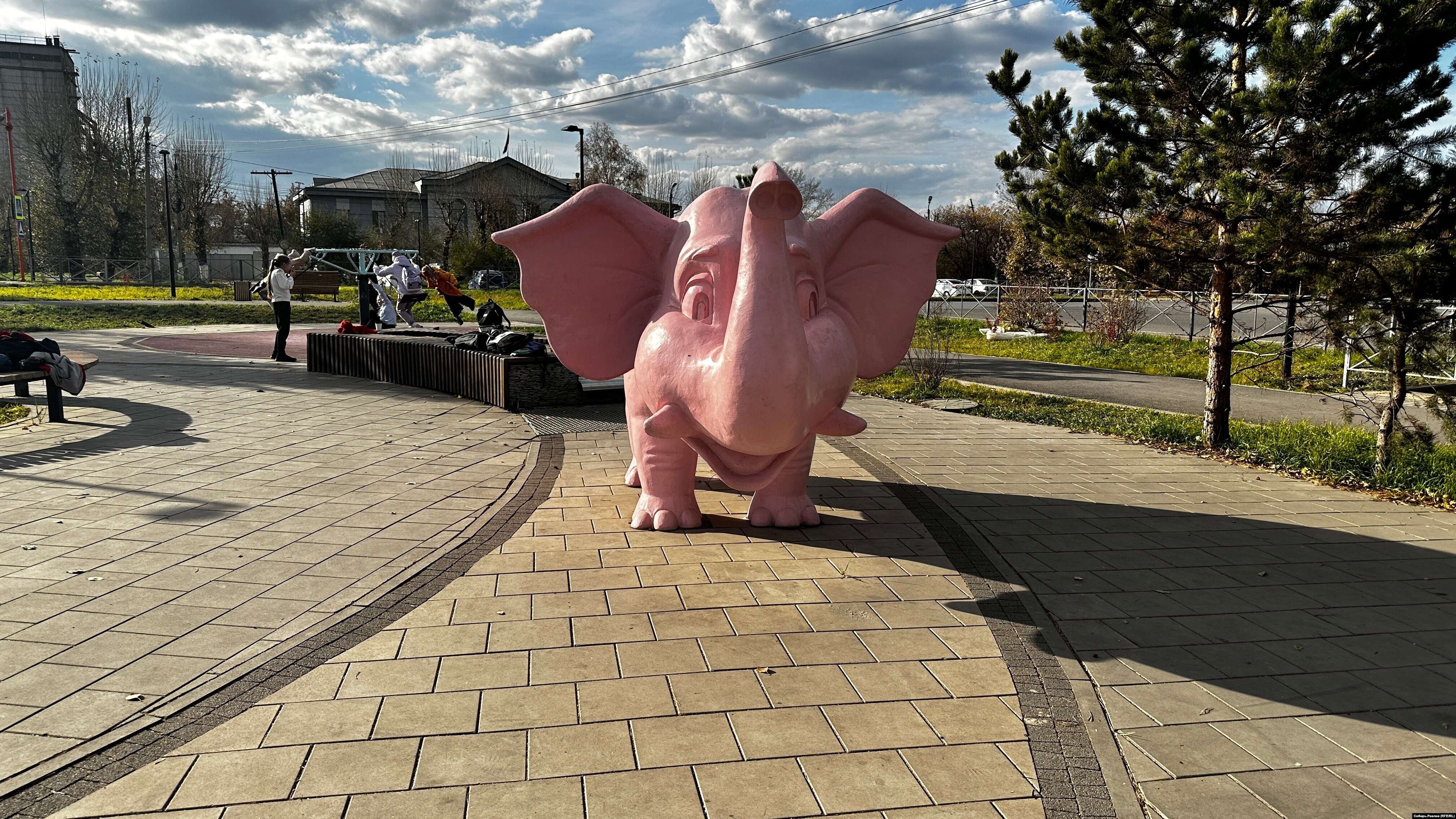 В центре Ужура в сквере стоит фонтан "Розовый слон". Здесь обычно собираются мамы с колясками и детвора после школы. Двое мальчишек – класс пятый-шестой – о чем-то оживленно спорят. Прислушиваемся. Тема дебатов не детская: у какой мины зона поражения больше.