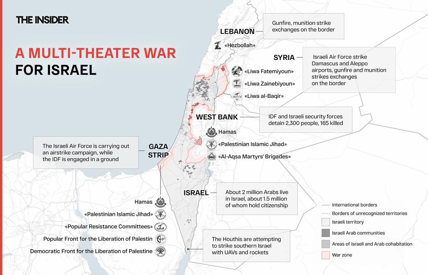 Currently, the internal theater of military operations appears to be the quietest—Israeli Arabs, who previously actively supported Palestinians, have not taken to the streets, fearing a sharp and forceful response. However, if desired, other “fronts” can be added, such as the “front” of information warfare waged online and in the media, as well as clashes in the ideological space, involving different understandings of the nature of the conflict and explanations of who is right and who is to blame.