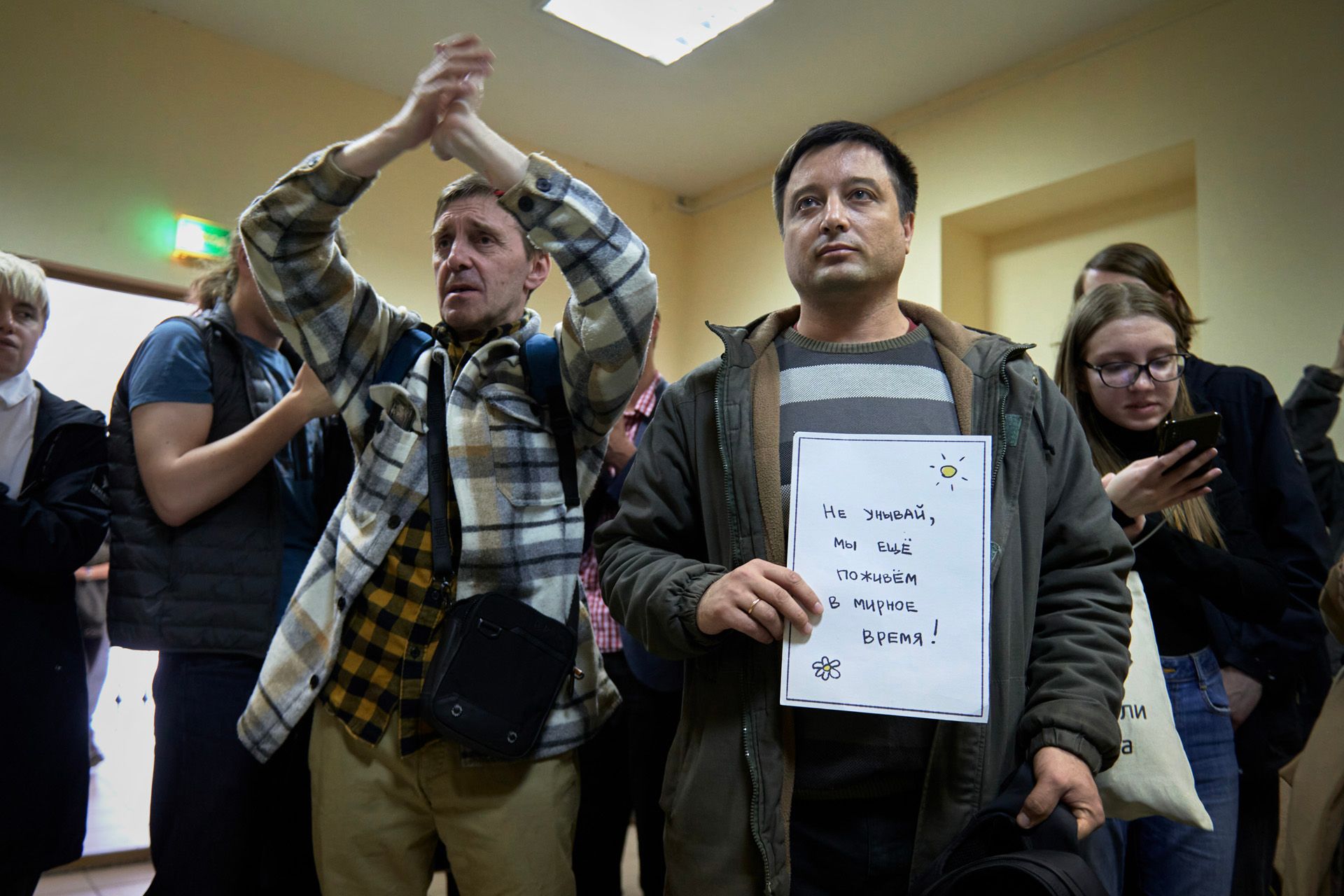 “When you’re not alone in a courtroom, it’s a bit easier — that’s why I came,” explained performance artist Anush Panina, who herself served 25 days in jail for speaking out against mobilization. “Besides, those supporting Sasha get to see each other,” Anush added.