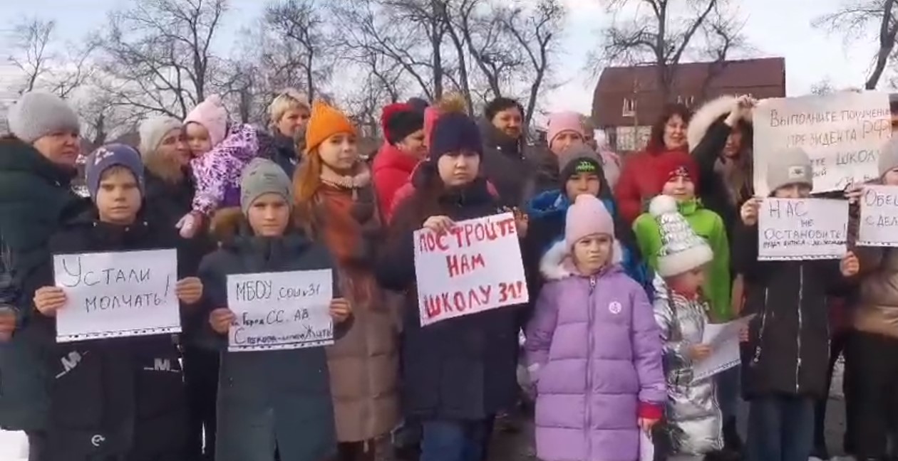 Ролик распространяется в соцсетях с 14 ноября. Три жительницы выступили с просьбой построить школу, рядом с ними стояли дети и жители с плакатами: "Посёлок Нагорный деградирует без школы и детского сада", "В гостях – хорошо, а дома – лучше! Постройте нам родную школу! ", "Обещали – сделайте!" "Устали молчать" и другими.