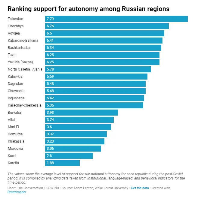 Not all regions in Russia are the same. In some, such as Tatarstan and Dagestan, autonomy has a genuine mass appeal.