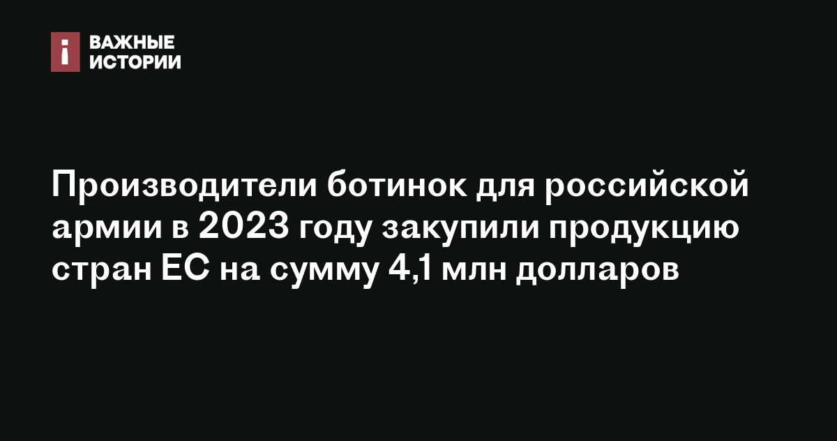 Производители ботинок для российской армии в 2023 году закупили продукцию стран ЕС на сумму 4,1 млн долларов