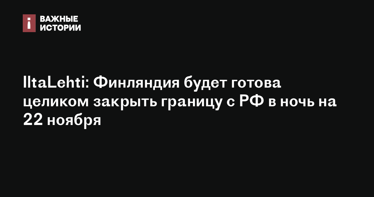 IltaLehti: Финляндия будет готова целиком закрыть границу с РФ в ночь на 22 ноября