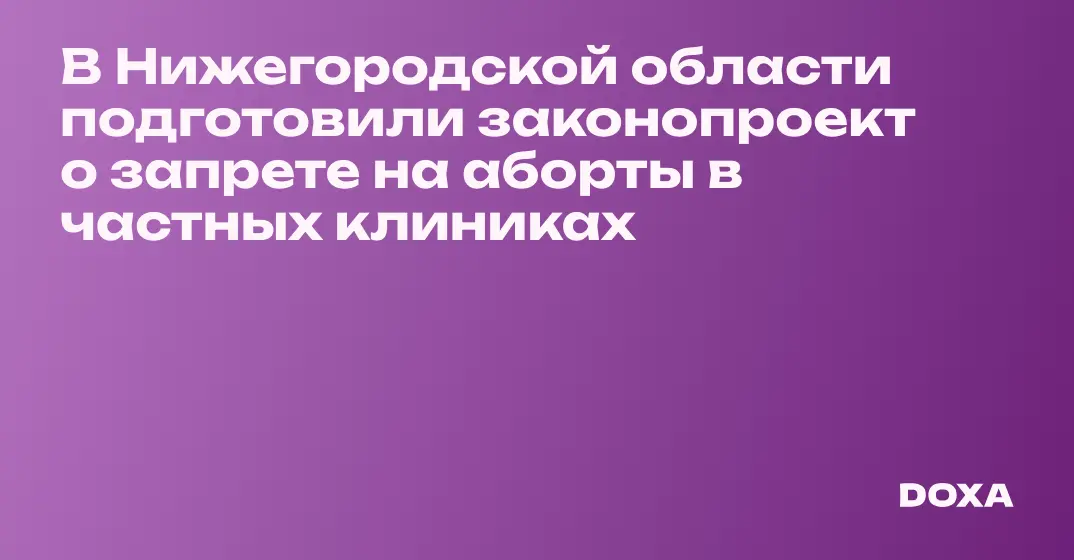 Губернатор Нижегородской области Глеб Никитин представил в региональный парламент законопроект, который предполагает запрет на проведение абортов в частных медицинских клиниках и уменьшение допустимого срока для искусственного прерывания беременности. Инициатива, внесенная в региональную базу законопроектов, предлагает внести изменения в статью 56 федерального закона «Об основах охраны здоровья граждан в РФ». Главной мотивацией предложения стало якобы стремление улучшить демографическую ситуацию и сократить осложнения, возникающие в результате абортов. Согласно предложенному проекту, аборты должны осуществляться исключительно в государственных медицинских учреждениях.