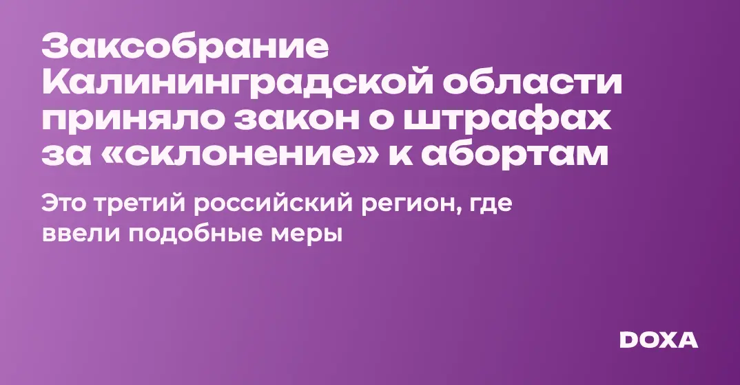 Законодательное собрание Калининградской области приняло закон о штрафах до 50 тысяч рублей за «склонение» к абортам.