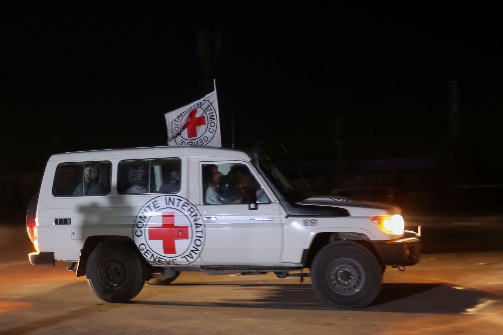 Ibraheem Abu Mustafa / Reuters / Scanpix / LETA Автомобиль Красного Креста везет освобожденных израильских заложников с севера сектора Газа на южную границу к контрольно-пропускному пункту Рафах. 24 ноября 2023 года