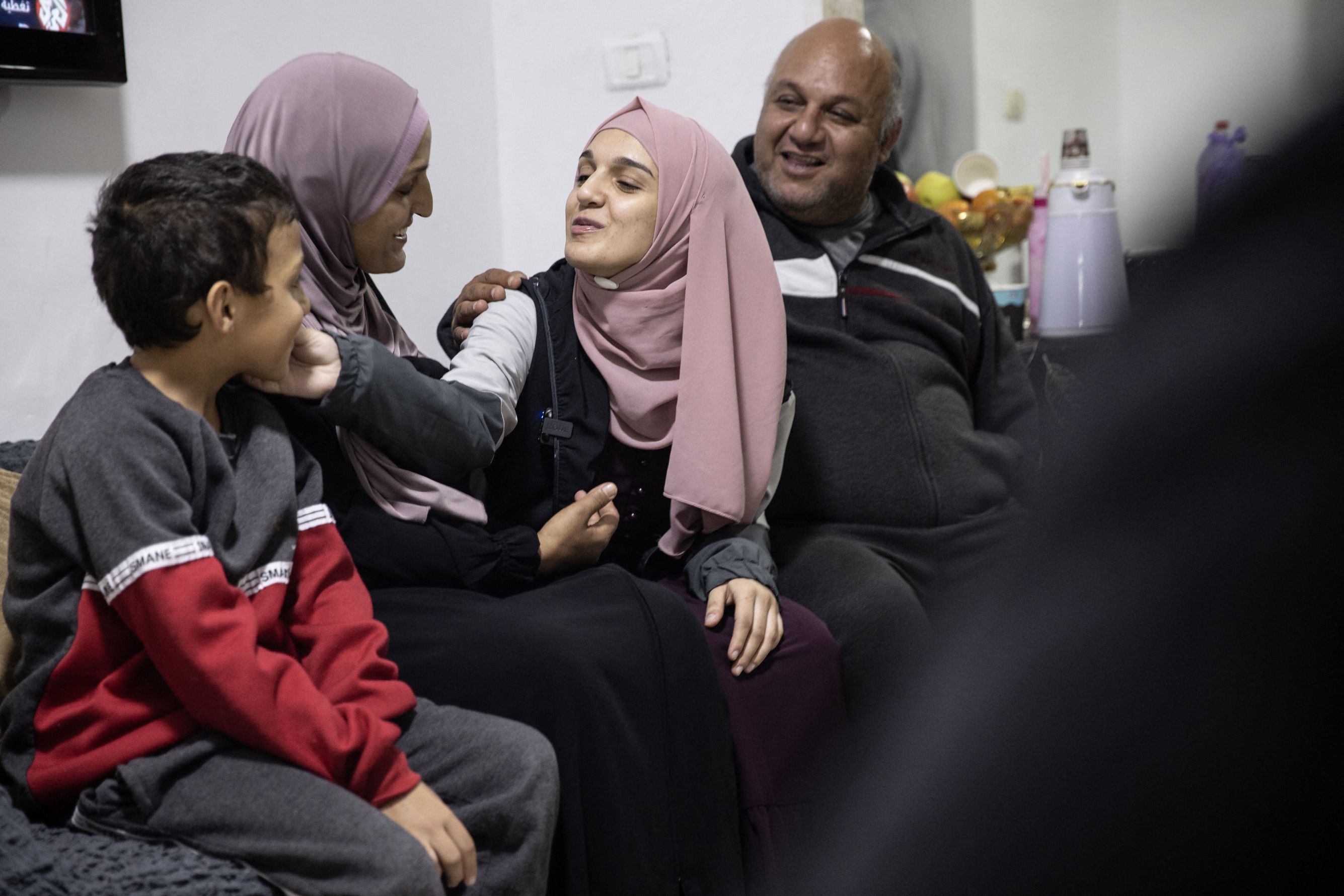 Mostafa Alkharouf / Anadolu / ddp / Vida Press 23-летняя Малак Салман, освобожденная из израильской тюрьмы, в окружении семьи. В 16 лет она по пути в школу напала с ножом на полицейского.