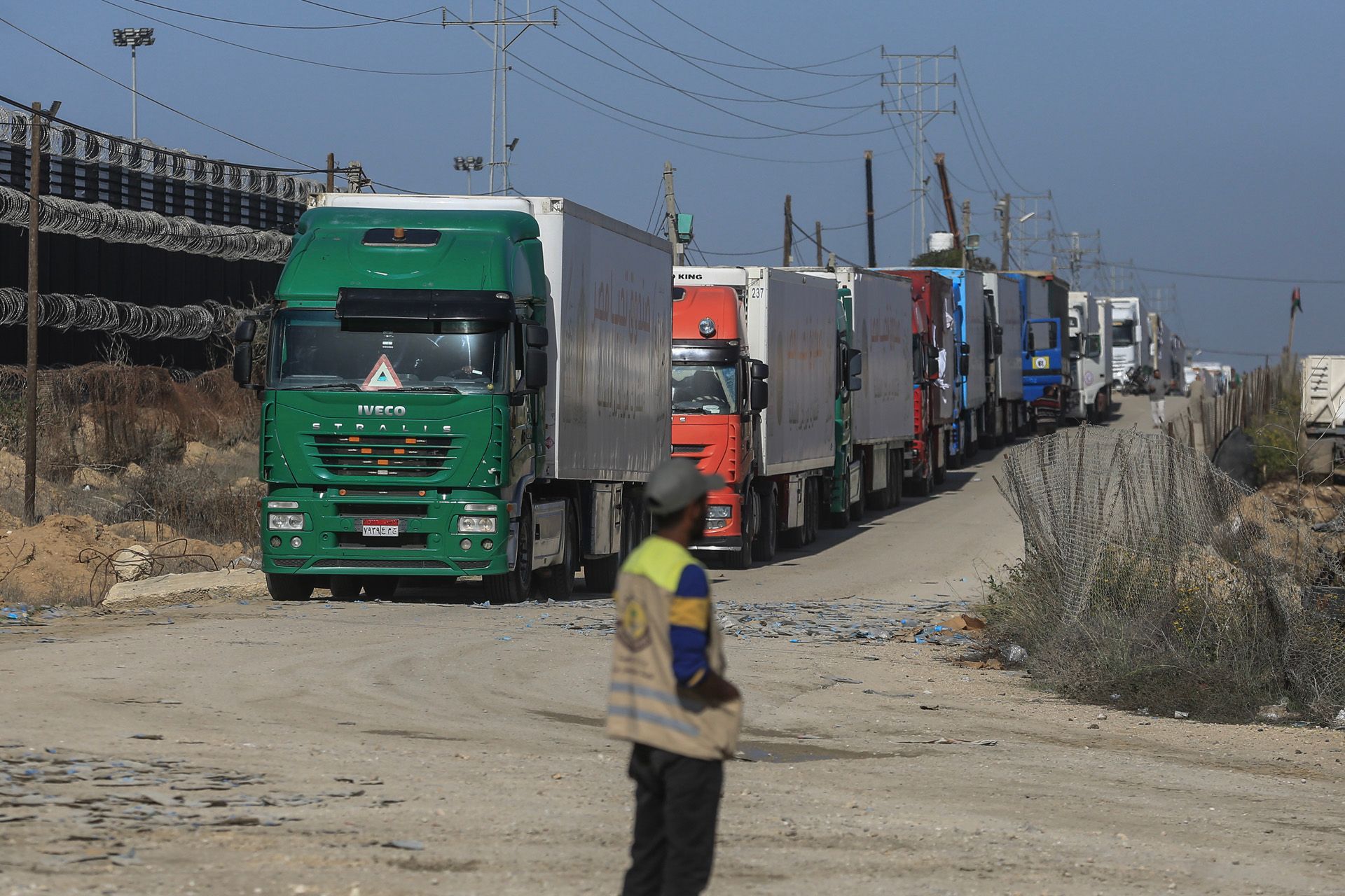 Mohammed Talatene / dpa / Scanpix / LETA Грузовики с гуманитарной помощью въезжают в сектор Газа через контрольно-пропускной пункт Рафах на границе с Египтом. 24 ноября 2023 года